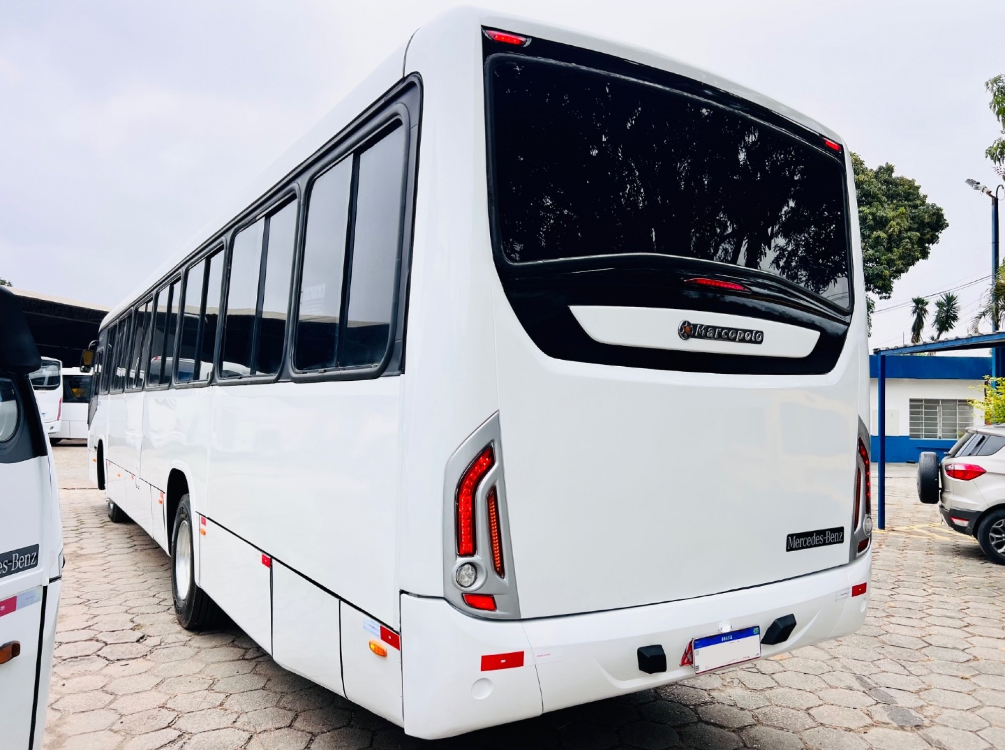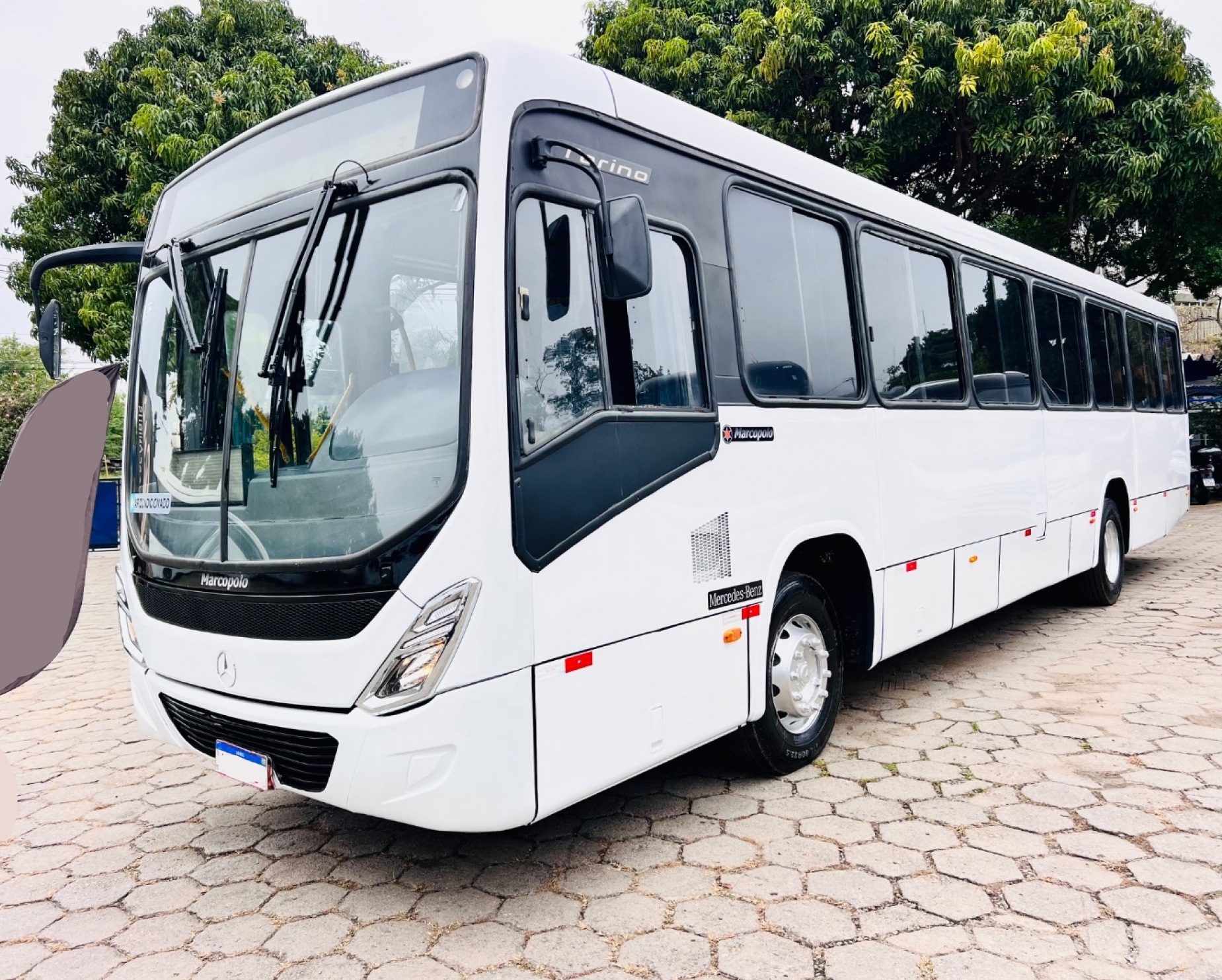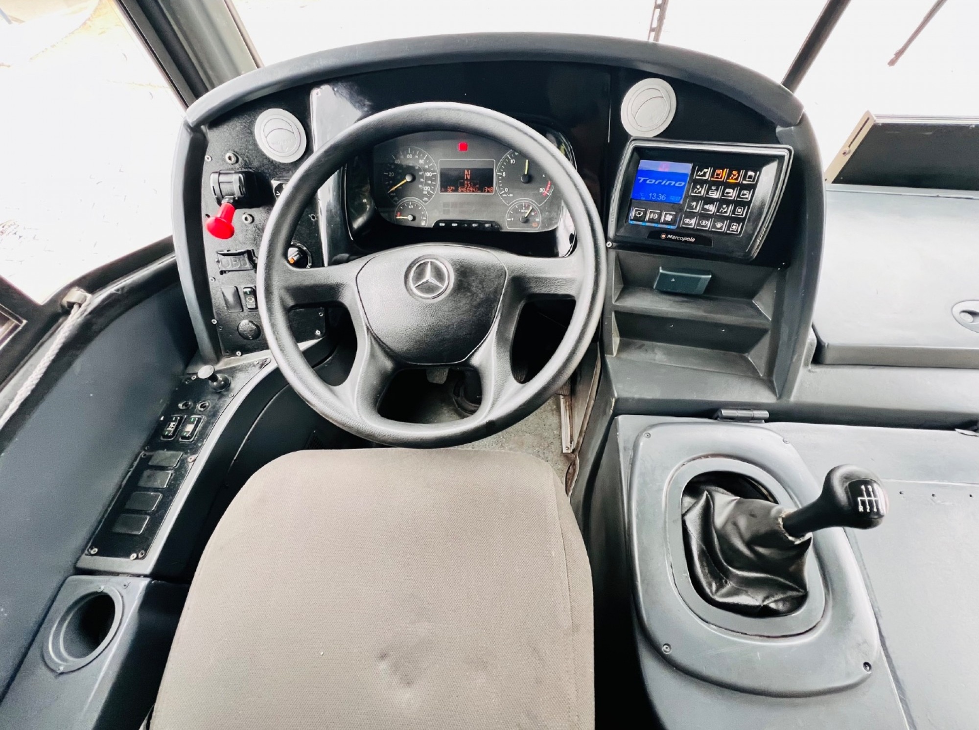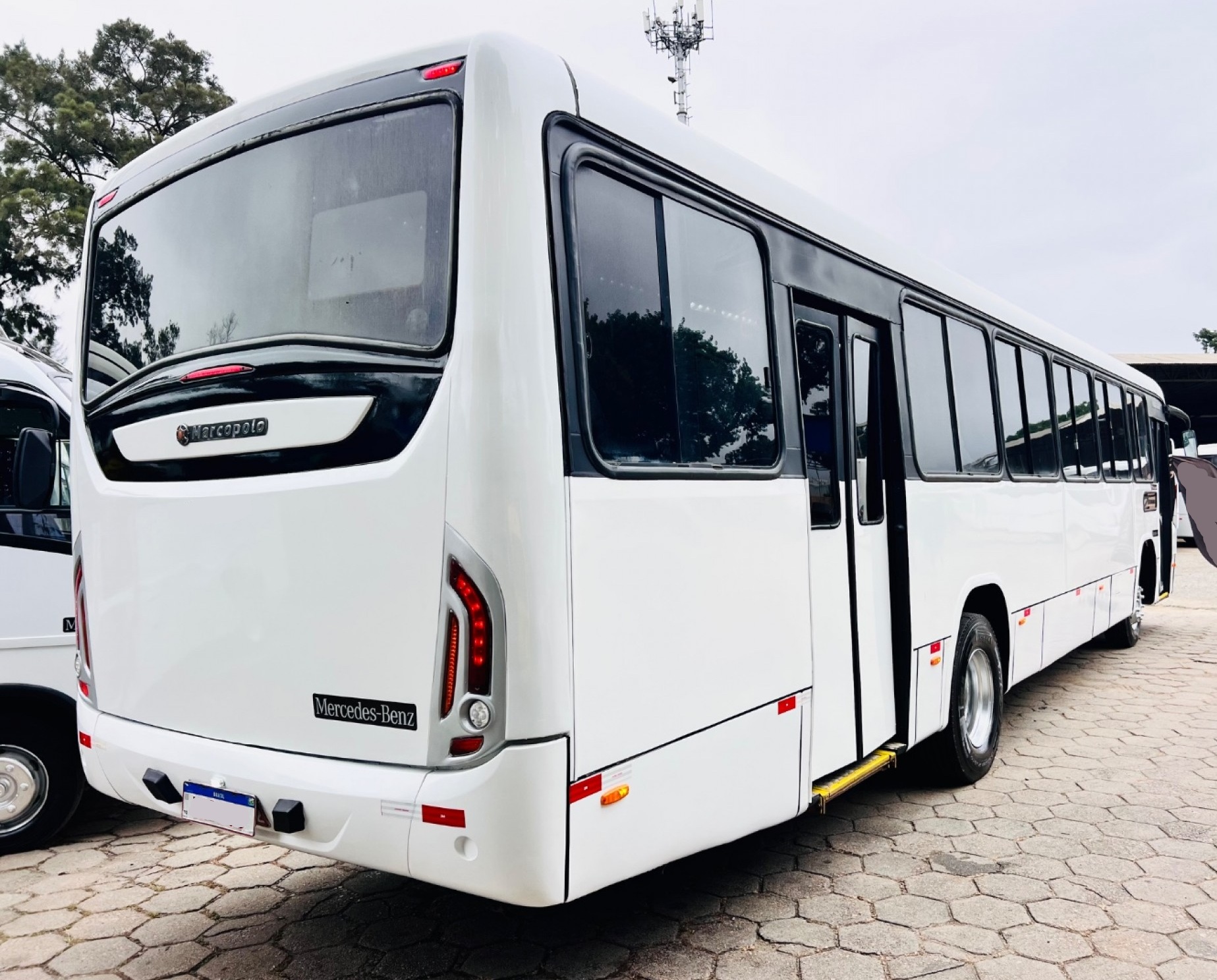 Ônibus Urbano Marcopolo New Torino, mecânica Mercedes-Benz 1721 dianteiro, ideal para transporte urbano e linhas regulares. Equipado com 41 bancos fixos estofados, duas portas, piso em alumínio revestido em taraflex e sistema de acessibilidade com elevador traseiro.