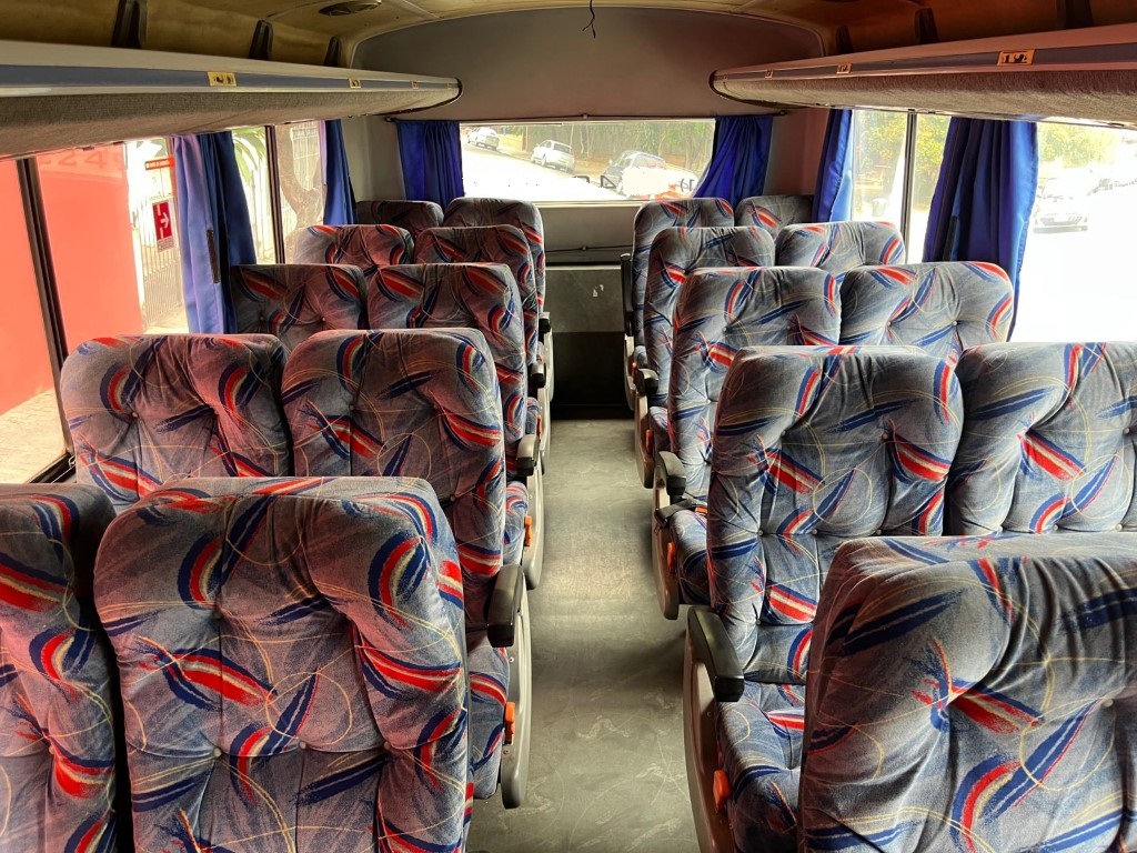 O Busscar Elbuss 320 é um ônibus rodoviário robusto e confortável, ideal para fretamentos. Equipado com motor dianteiro Mercedes OF 1418, conta com 40 poltronas reclináveis soft revestidas em tecido. Temos 2 unidades disponíveis, ambas totalmente revisadas de mecânica, elétrica e pneus, prontas para uso imediato. Documentação em dia, sem restrições, com entrega imediata e garantia.