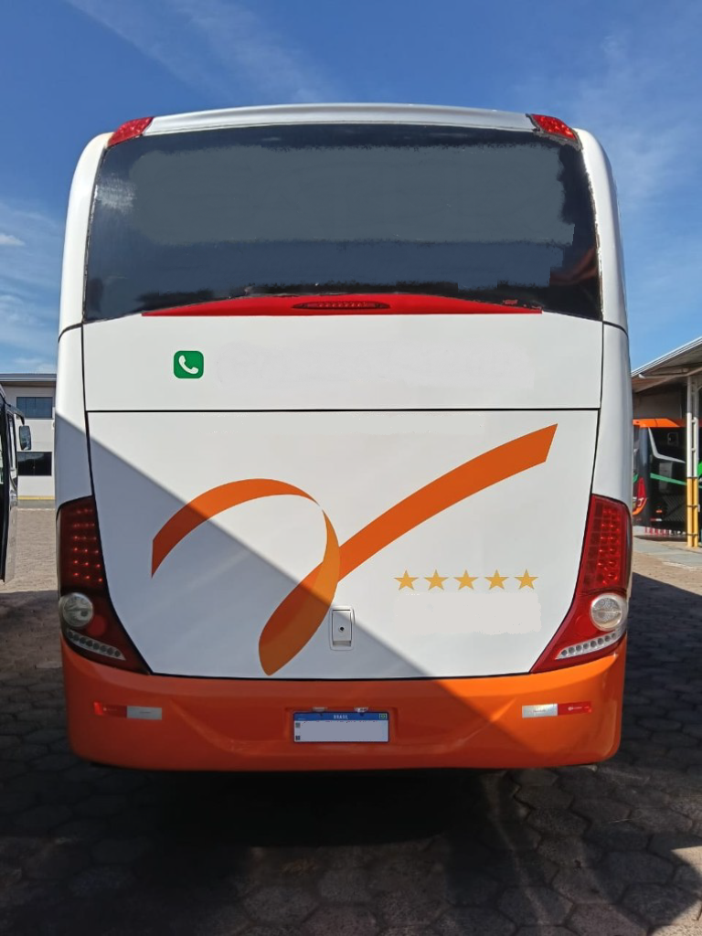 DADOS TÉCNICOS DO MOTOR: Ônibus de uso em serviços intermunicipal e rodoviário com motor MWM 7A260 – 7.12, diesel com 7,2 litros, vertical, em linha e dianteiro. Totalmente eletrônico com 6 cilindros, em linha com 4 válvulas por cilindro, turbo e intercooler. Tem auto proteção por superaquecimento – Atende as normas Euro V Fase P 7.
