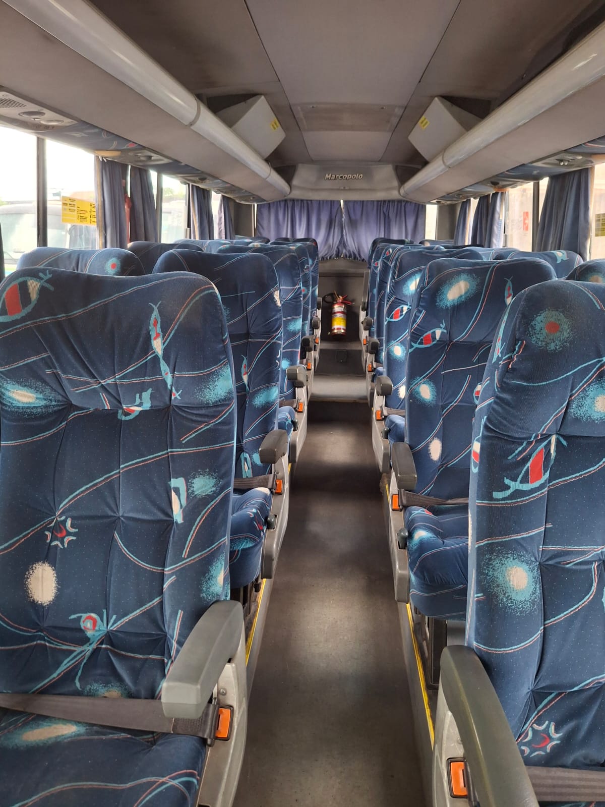 Equipado com 26 poltronas reclináveis soft, oferece conforto e praticidade para passageiros. Conta ainda com ar-condicionado de teto revisado e gelando perfeitamente, além de cabine separada (cabinada), proporcionando mais segurança e organização no transporte.