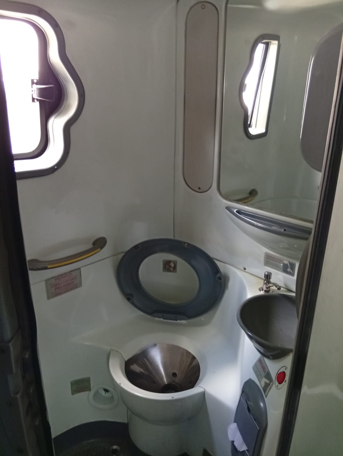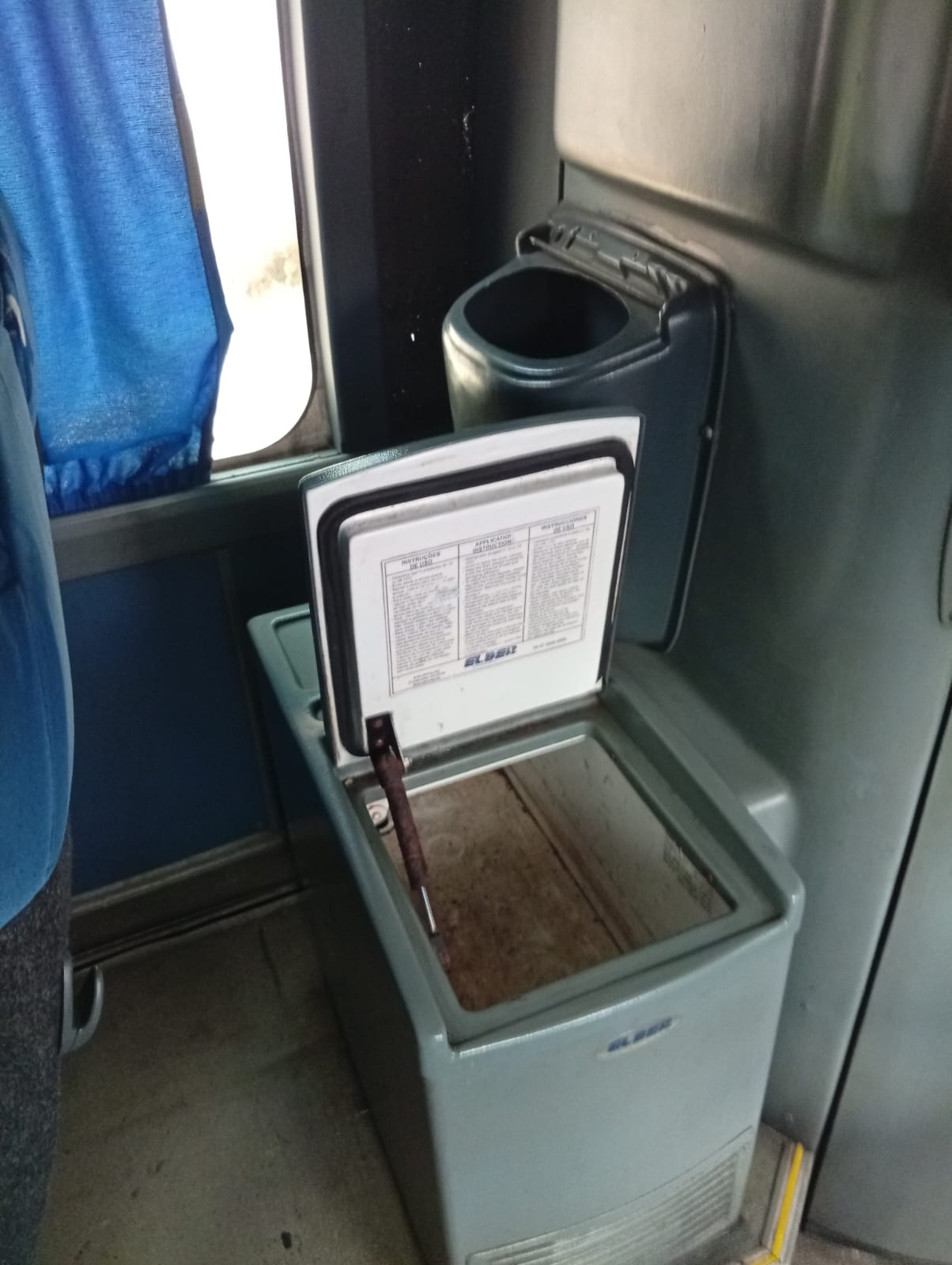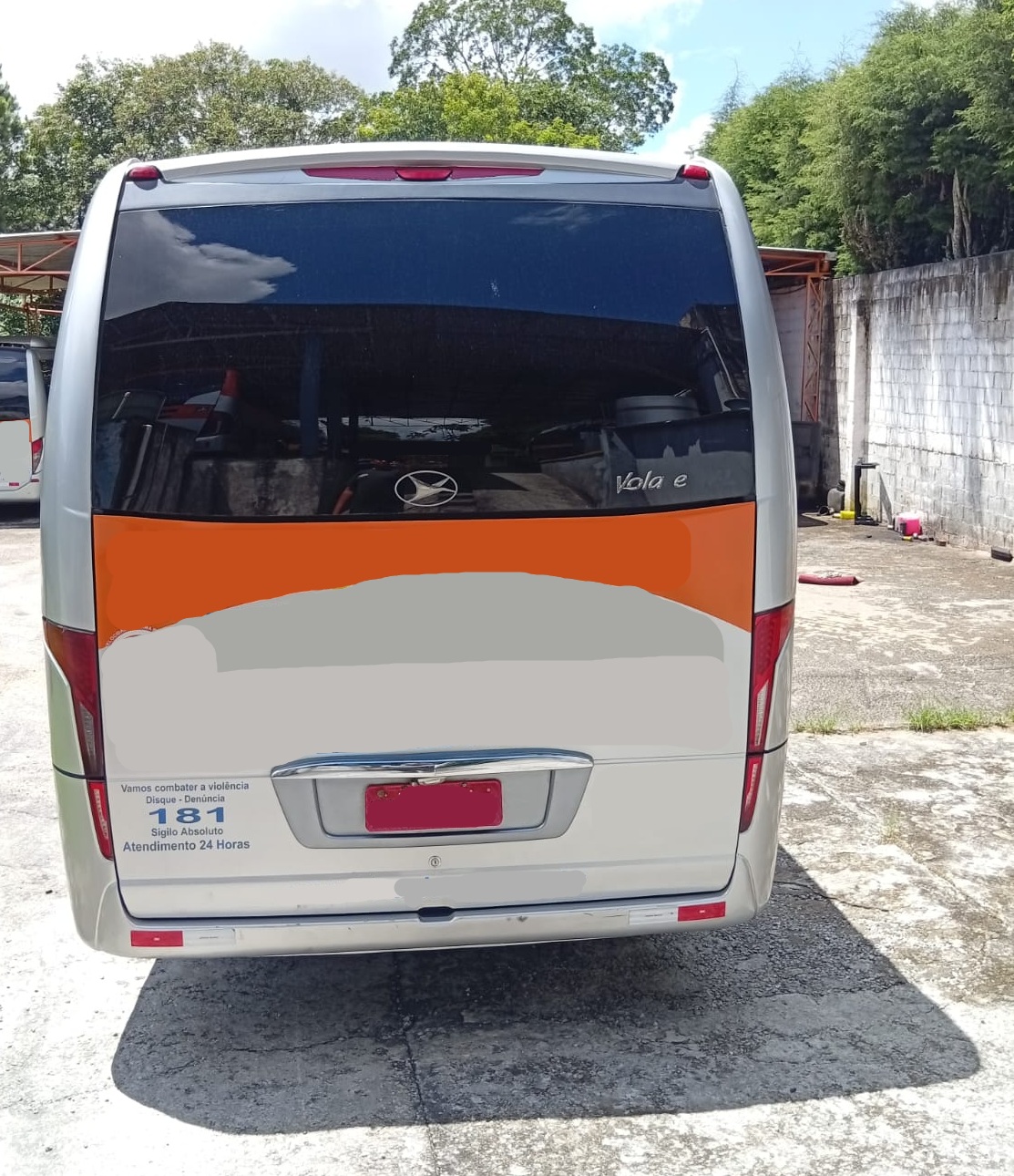 Micro rodoviário equipado com vigia traseiro, som ambiente, WC funcional, geladeira elétrica, pneus dianteiros e traseiros seminovos, revisões em dia e documentação liberada, sem restrições financeiras ou tributárias.