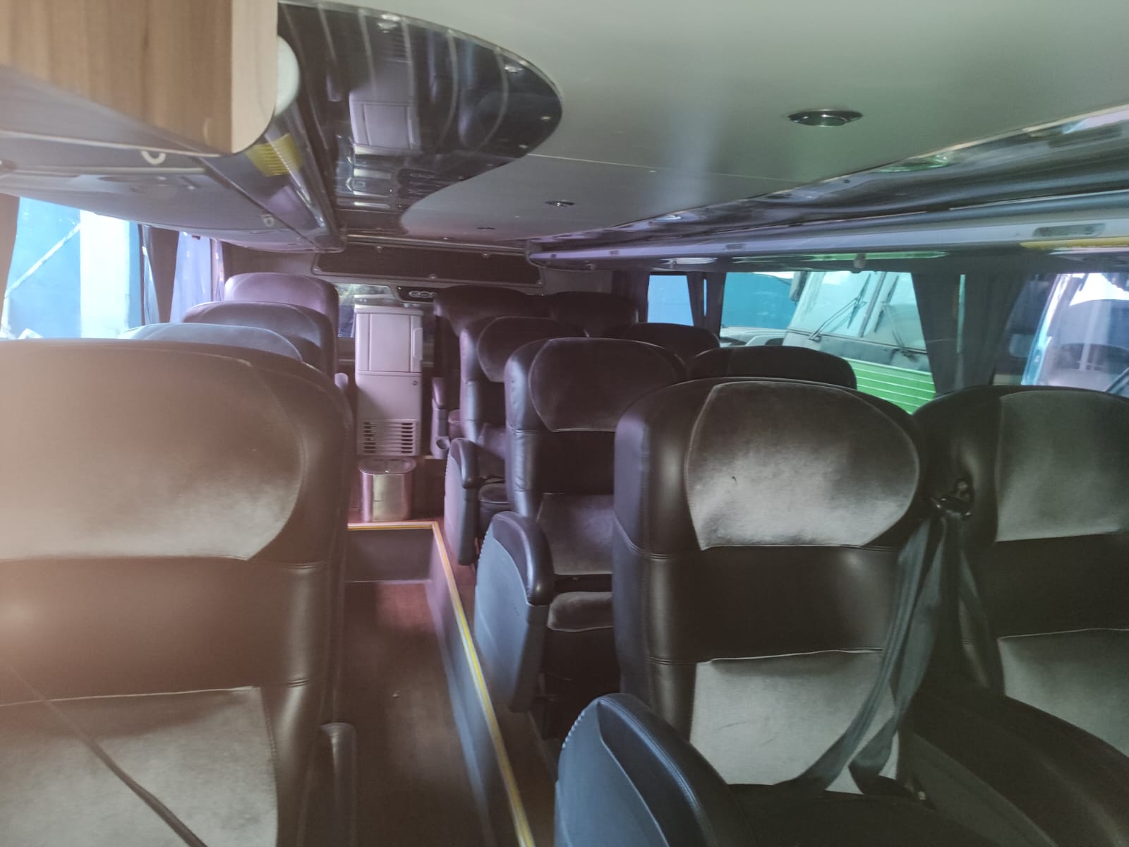 Conta com 43 poltronas leito com descanso para pernas, distribuídas entre os dois pisos, oferecendo máximo conforto para passageiros e alto padrão para operações de turismo, fretamento executivo e viagens rodoviárias de longa distância.