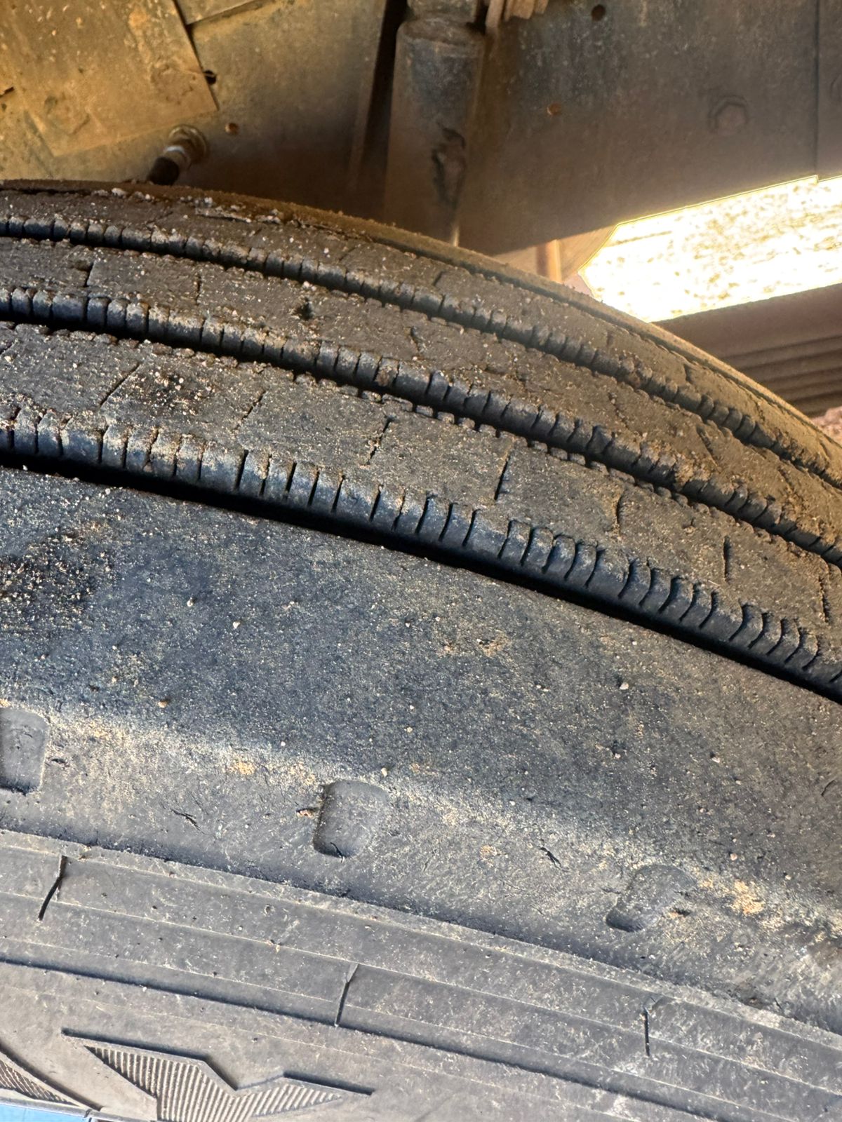 Pneus dianteiros seminovos e traseiros recapados em ótimo estado.