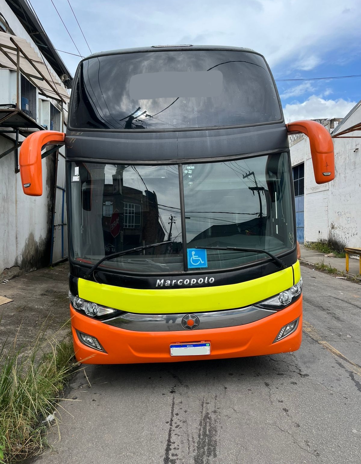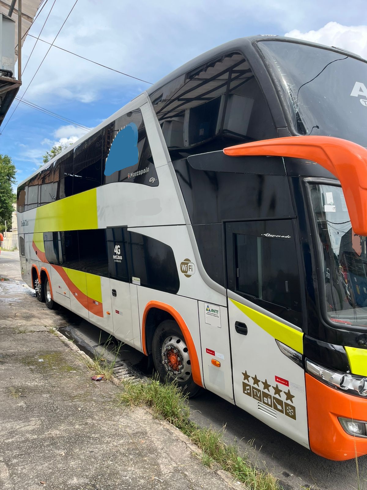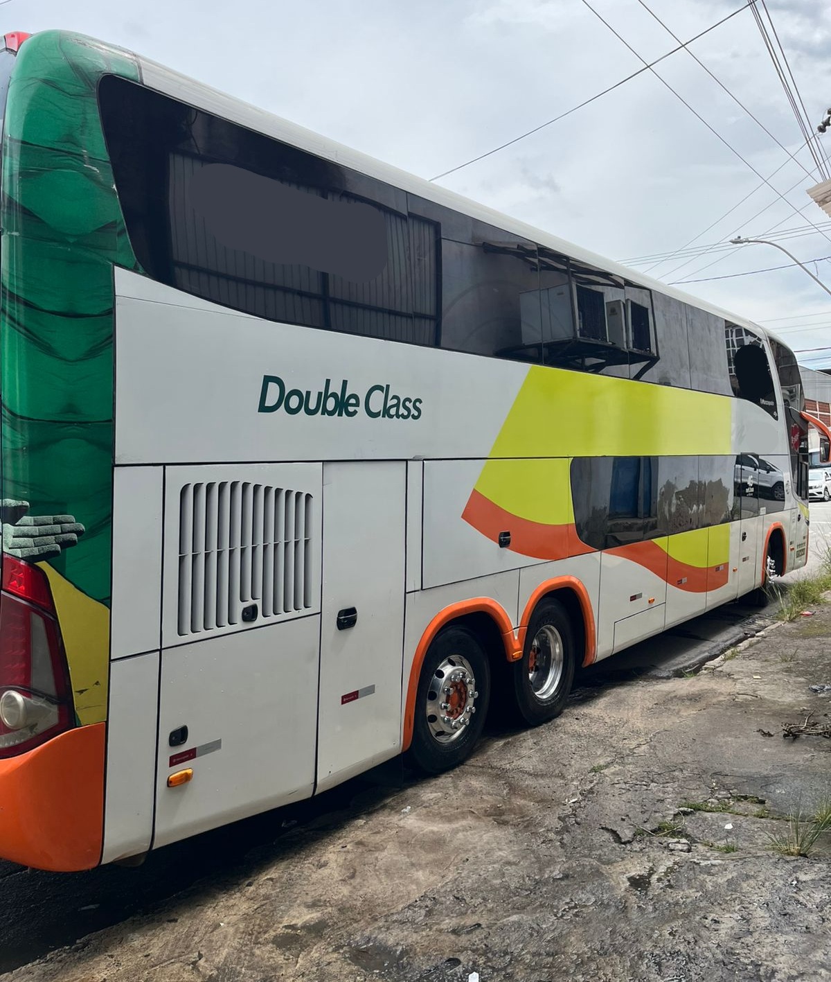 O ônibus Marcopolo Paradiso 1800 DD conta com estrutura completa para transporte executivo, incluindo banheiro (WC), vigia traseiro, geladeira elétrica e excelente distribuição interna nos dois andares.