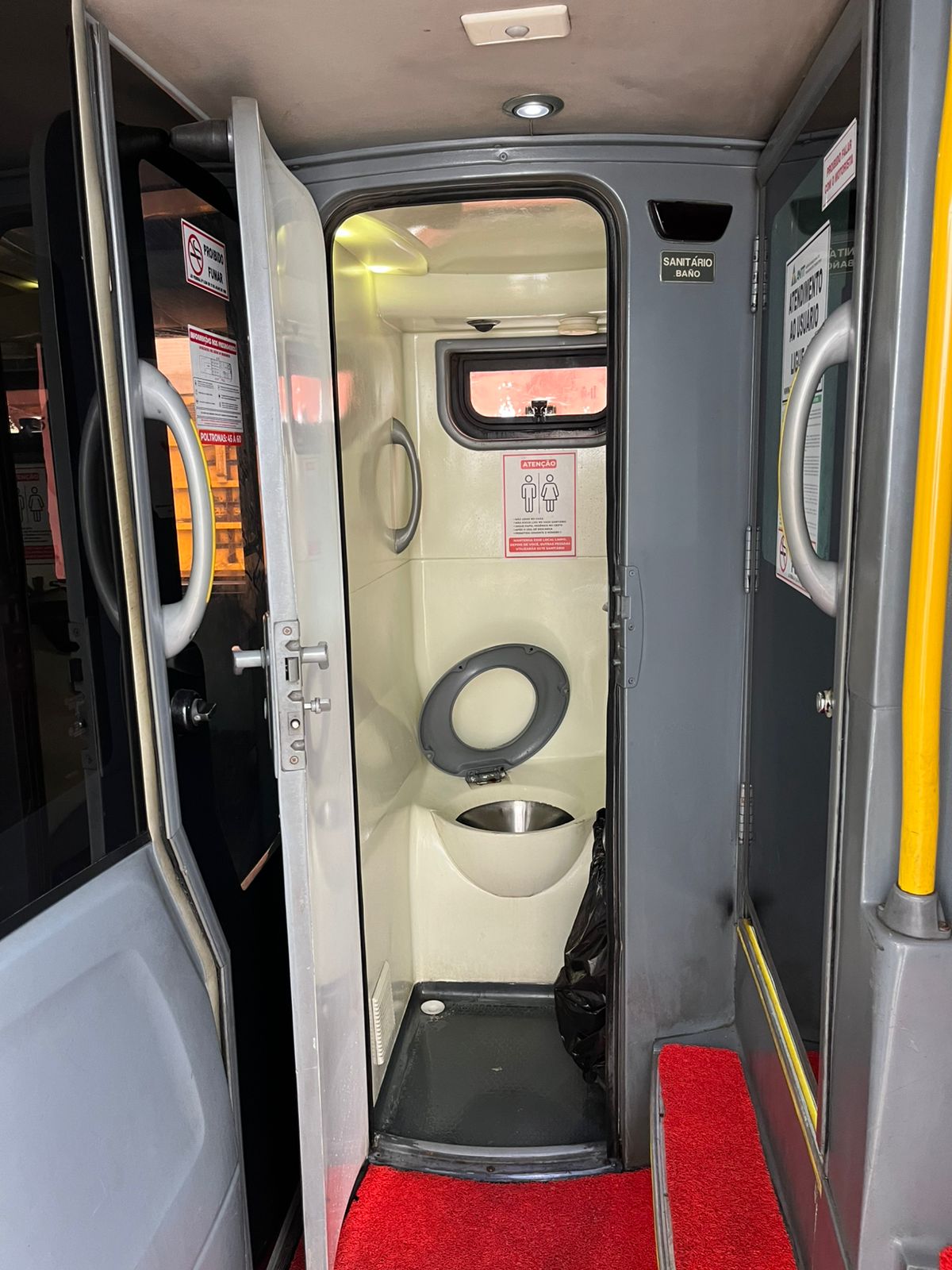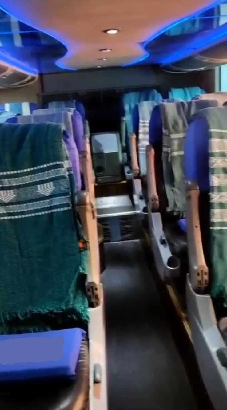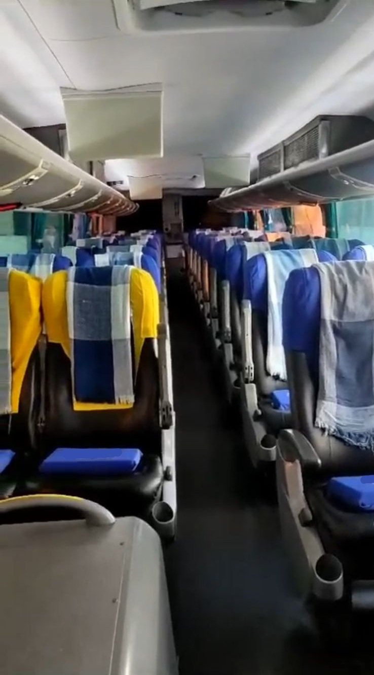Equipado com monitores de TV LCD, DVD, sistema de som ambiente e microfone, oferecendo conforto e entretenimento aos passageiros.