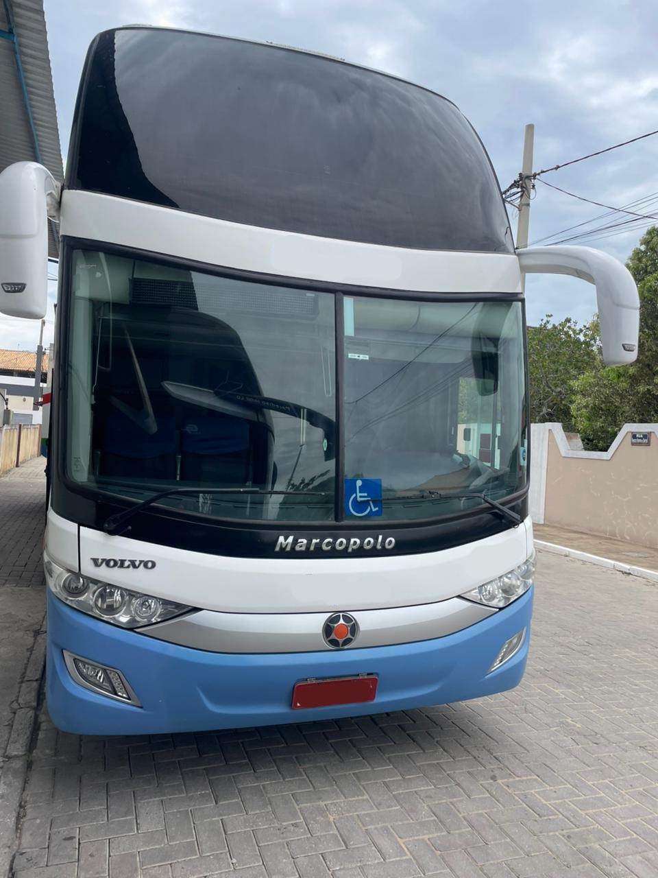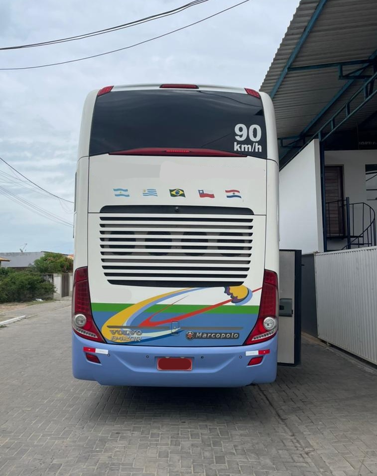 Ônibus Marcopolo 1800 DD G7 seminovo, único dono, só turismo, super luxo, completo, 56 poltronas leito, Volvo B420 6×2, revisado, quitado e pronto para transferência imediata.