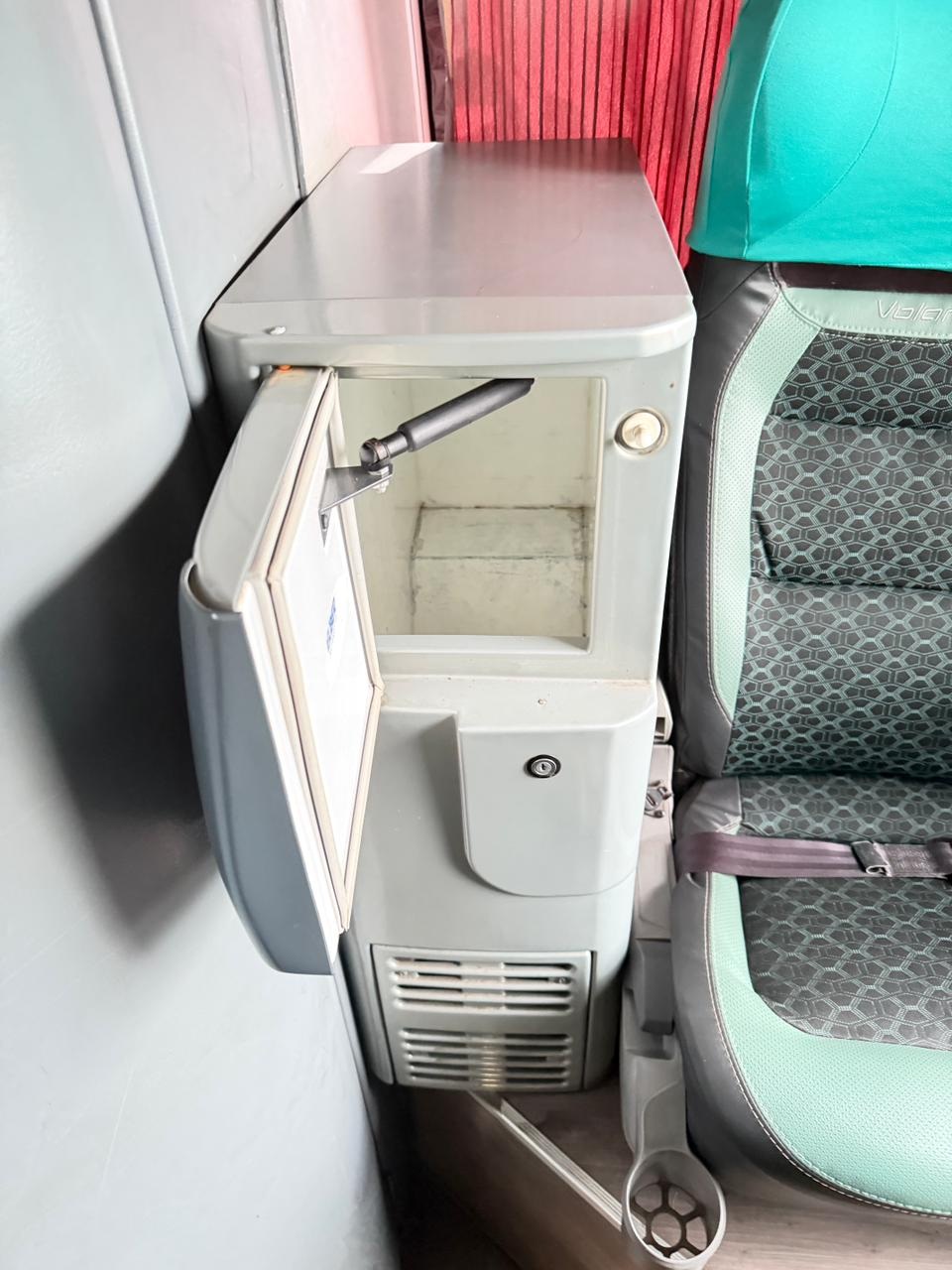 Este ônibus possui vigia traseiro, geladeira elétrica, som ambiente e diversos itens de conforto e segurança.