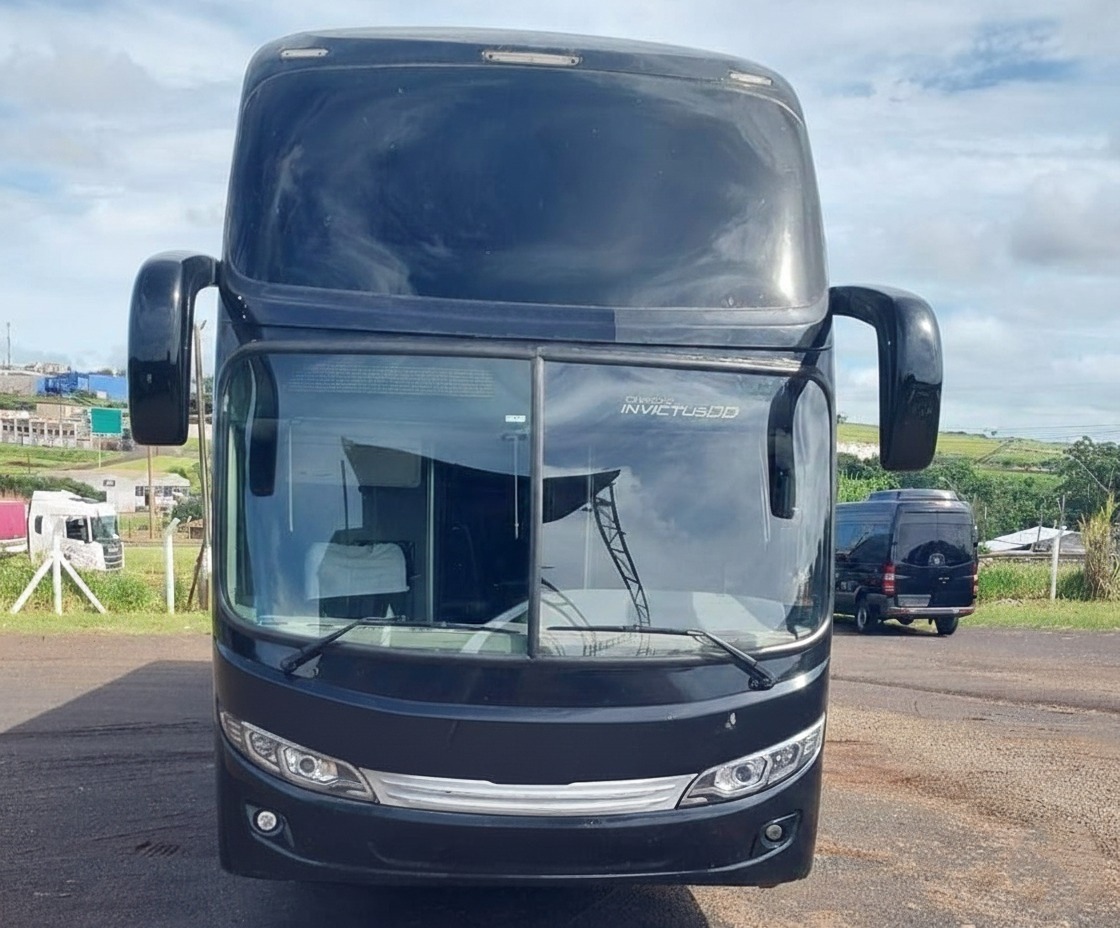 Ônibus rodoviário Double Decker (DD) de alto padrão, carroceria Comil Campione Invictus, montado sobre chassi Volvo B 450R 8×2, ano/modelo 2017/2017. Veículo seminovo, com histórico exclusivo de uso em turismo, ideal para empresas de fretamento, turismo executivo e linhas rodoviárias premium.