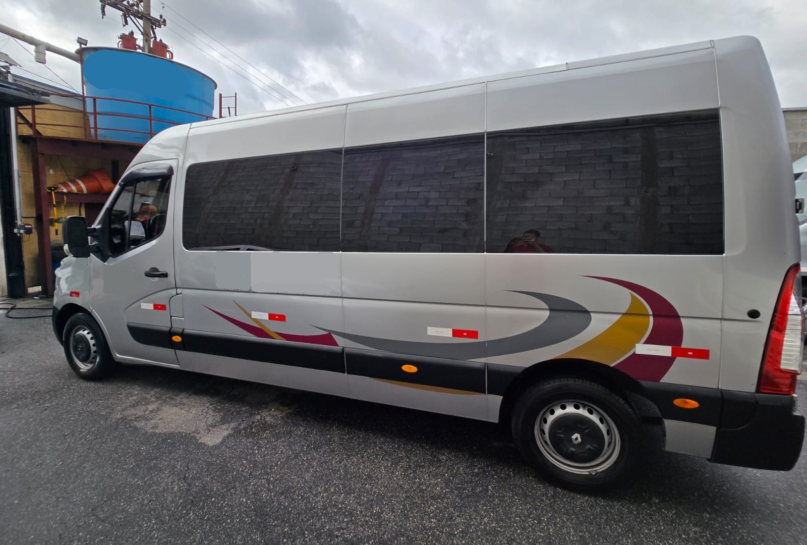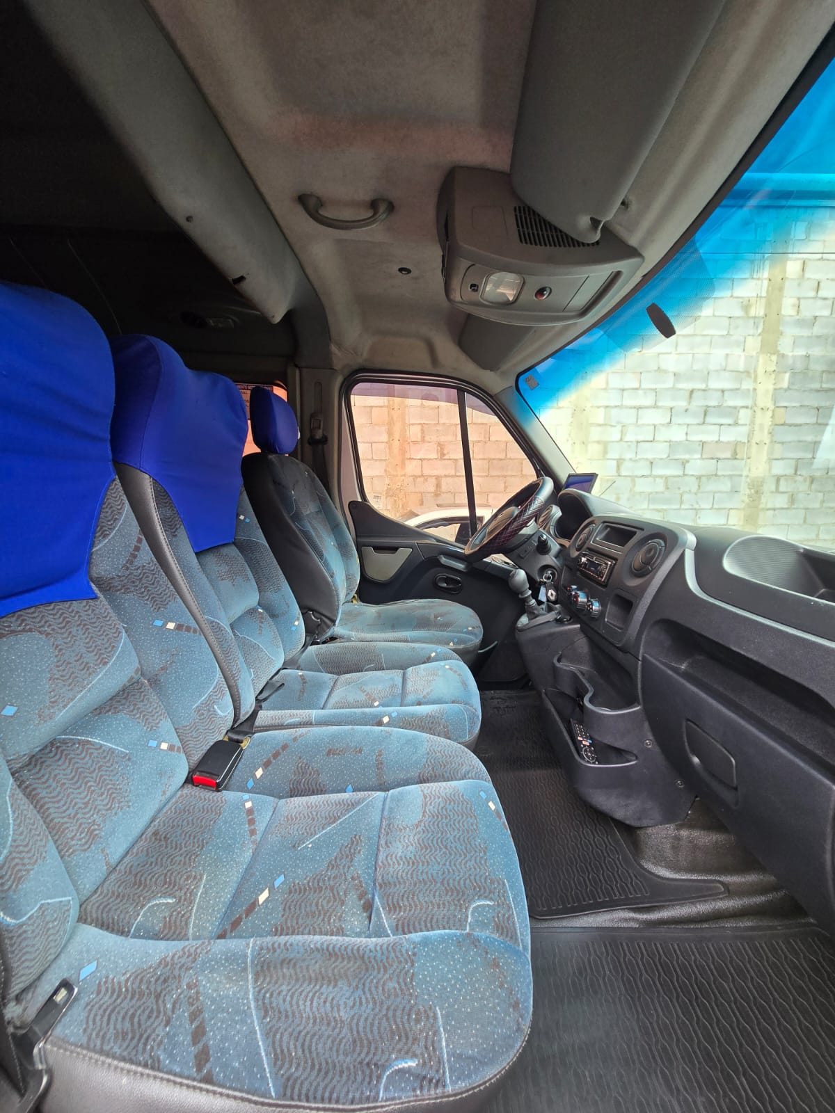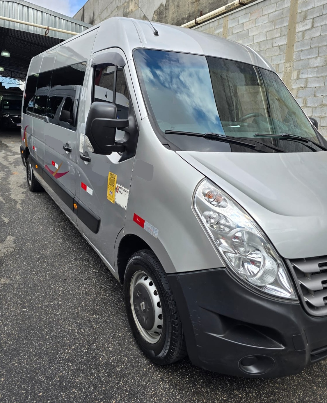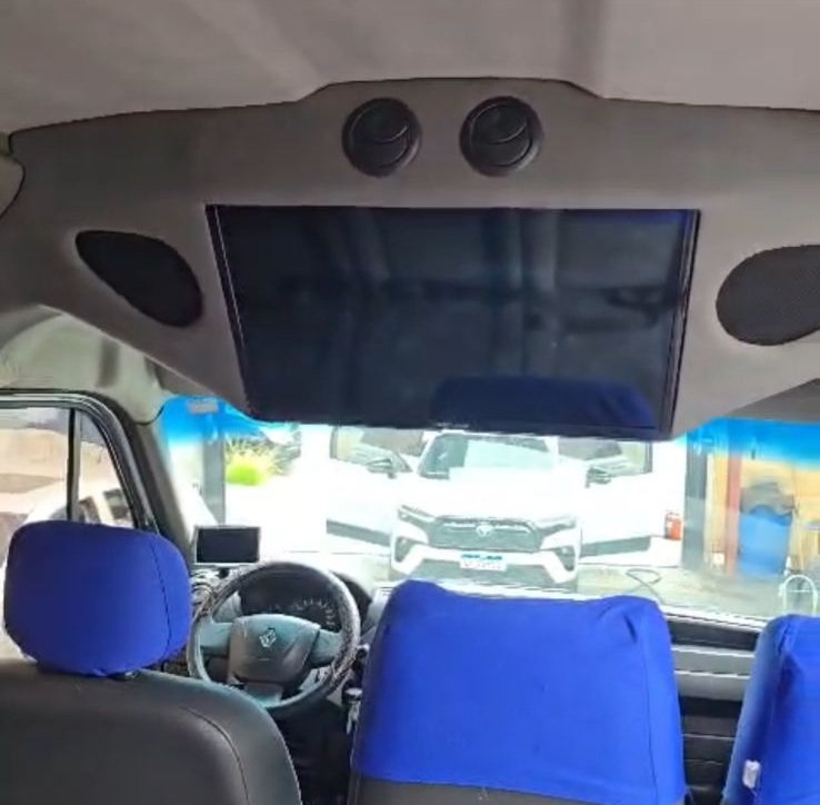 Van Renault Master Executiva equipada com 16 poltronas reclináveis em tecido, ar-condicionado original com distribuição lateral e funcionamento perfeito, vidros e retrovisores elétricos nas portas dianteiras, som ambiente e monitor de TV LCD.