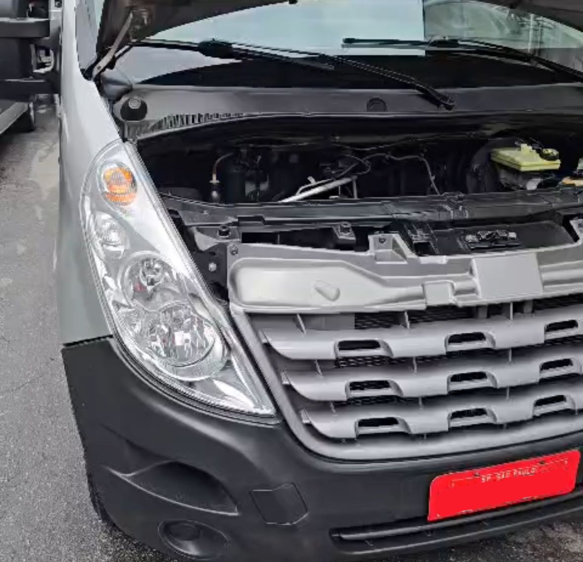 Motor Renault 2.3 Diesel, 4 cilindros em linha, 130 cv de potência, sistema eletrônico de injeção, turbo e intercooler.