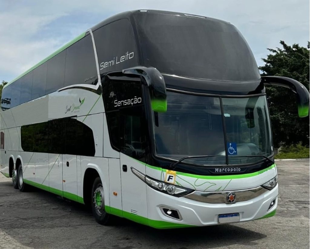 O Marcopolo Paradiso 1600 LD G7, um ônibus semi leito, completo, está disponível para venda. Com um comprimento de 14 metros, este ônibus possui 42 poltronas leito O500RSD Euro V (ultimo ano com tecnologia Euro 5), 2022/2023, câmbio manual, 42 passageiros com encosto de pernas , 2 banheiros, com ar condicionado, janelas coladas e elevador. Possibilidade de tirar um banheiro e alterar para 46 lugares no carro e no documento por R$18.000,00 a mais. Tem revisão mecânica, elétrica e pneus. Toda documentação em dia, sem restrições, pronto para uso e entrega imediata.